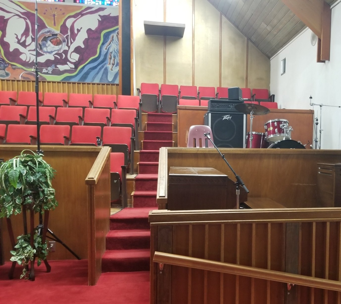 At Missionary Baptist Church we played an integral role of their sanctuary remodel. We installed new pews and new choir theater seating for them. We also helped to rebuild and refinish their stage for them. Once the stage was complete, we also refinished some of their pulpit furniture. Below are some of the before and after photos from the project.
