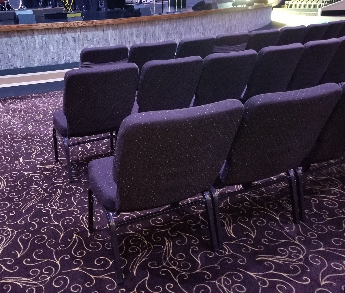 Originally, we helped Pentecostals of West Houston turn a gym into a sanctuary. We carpeted this space and they purchased new chairs. Recently, they decided to update this space again by having us re-carpeting the space and kept their existing chairs. The pictures below are the most recent before and after pictures of the sanctuary. But they aren't your typical "before" pictures since they also show our work from the original remodel. It gives us great pride knowing that our customers love working with us so much so that they come back later down the road when its time for an update!