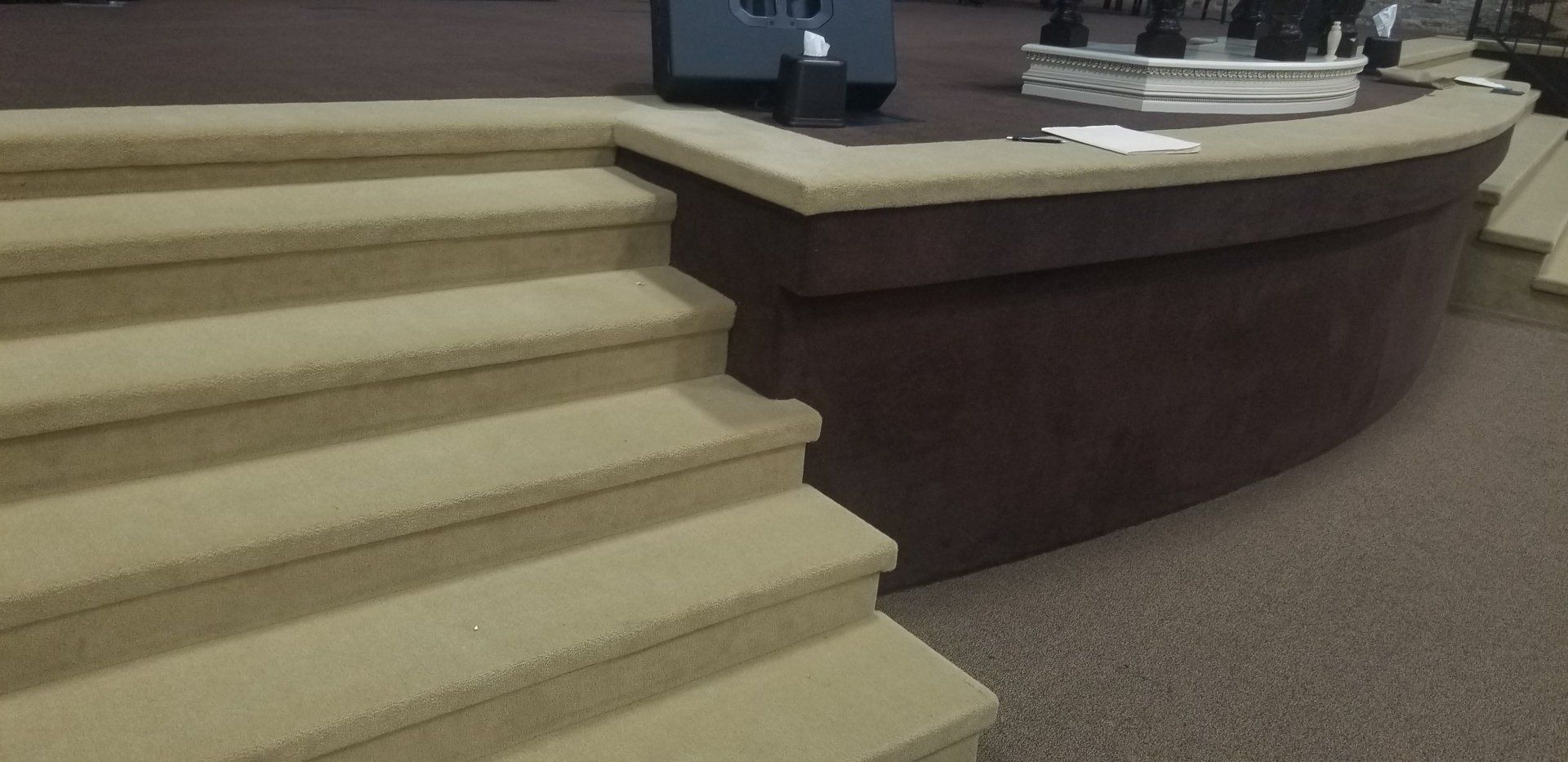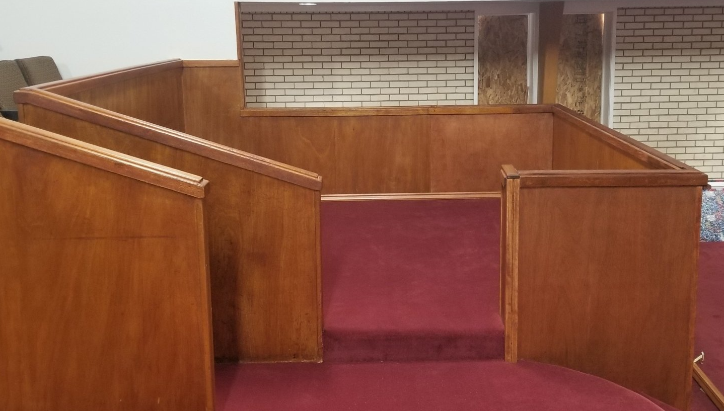 At Missionary Baptist Church we played an integral role of their sanctuary remodel. We installed new pews and new choir theater seating for them. We also helped to rebuild and refinish their stage for them. Once the stage was complete, we also refinished some of their pulpit furniture. Below are some of the before and after photos from the project.