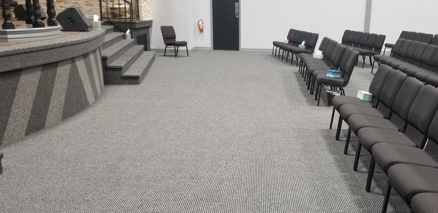 Originally, we helped Pentecostals of West Houston turn a gym into a sanctuary. We carpeted this space and they purchased new chairs. Recently, they decided to update this space again by having us re-carpeting the space and kept their existing chairs. The pictures below are the most recent before and after pictures of the sanctuary. But they aren't your typical "before" pictures since they also show our work from the original remodel. It gives us great pride knowing that our customers love working with us so much so that they come back later down the road when its time for an update!